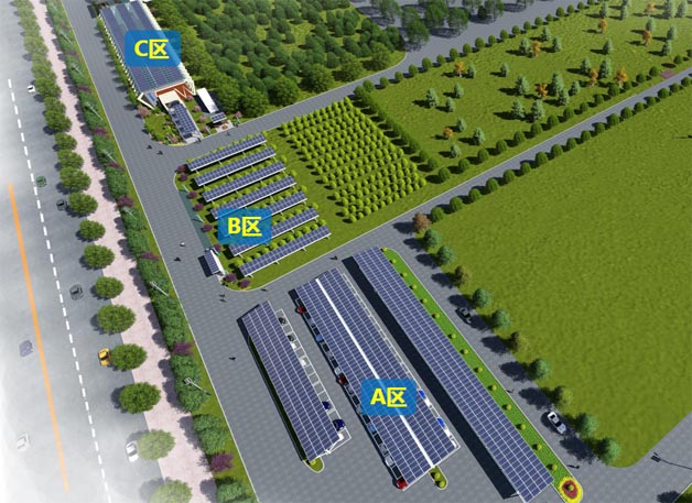 正在建設(shè)中的A區(qū)將包含光儲(chǔ)充車棚及管運(yùn)一體化系統(tǒng),集中展示光伏發(fā)電、儲(chǔ)能、汽車充電、智能停車管理、智慧充電運(yùn)營(yíng)等新能源應(yīng)用。