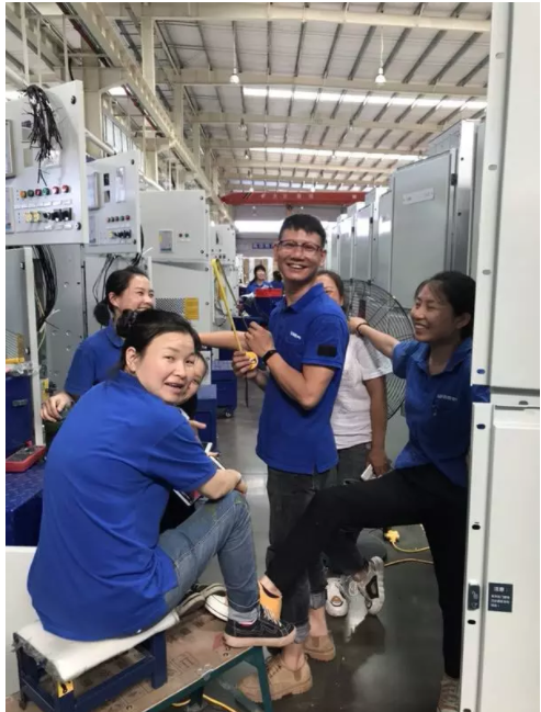 MV柜作為新產(chǎn)品項(xiàng)目,面對施耐德授權(quán)產(chǎn)品對品質(zhì)和工藝的高要求,殼體班組成員一絲不茍認(rèn)真對待,大家相互幫襯協(xié)作安全完成了任務(wù)。一次班組員工們在狹小的柜體空間里,蜷縮著身體一待就是好幾個小時,只為完成機(jī)構(gòu)調(diào)試及工藝整改要求。