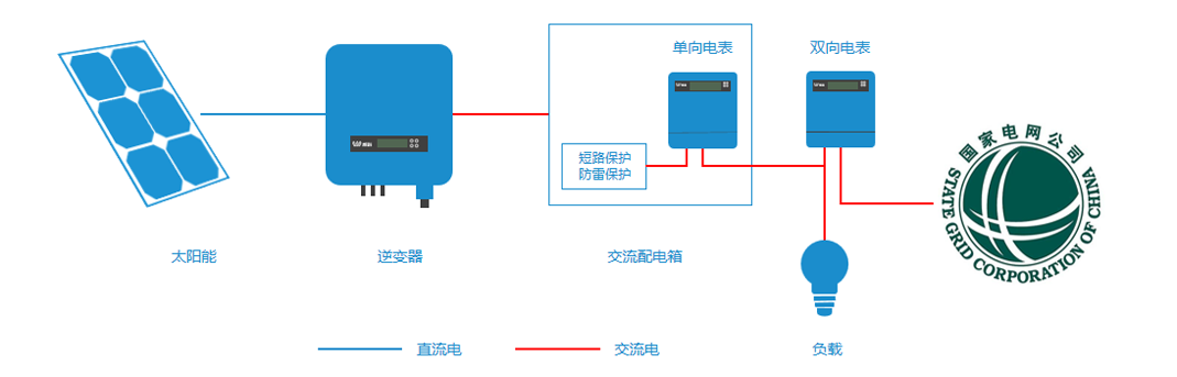 1、陽(yáng)光發(fā)電,可為負(fù)載供電,也可售電給電網(wǎng)