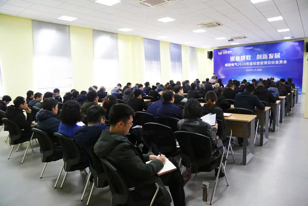 時(shí)序更替,留下奮斗者前進(jìn)的足跡;一元復(fù)始,帶給開拓者無限的希望。1月8日下午,以“銳意進(jìn)取、創(chuàng)新發(fā)展”為主題的威勝電氣 2020 年度經(jīng)營(yíng)管理目標(biāo)宣貫會(huì)在電氣產(chǎn)業(yè)園順利召開,控股董事會(huì)吉主席、控股本部、威勝電氣董事會(huì)以及經(jīng)營(yíng)管理團(tuán)隊(duì)的領(lǐng)導(dǎo)、員工代表共計(jì)80余人參會(huì),會(huì)議由威勝電氣行政人力總監(jiān)鄧超艷女士主持。