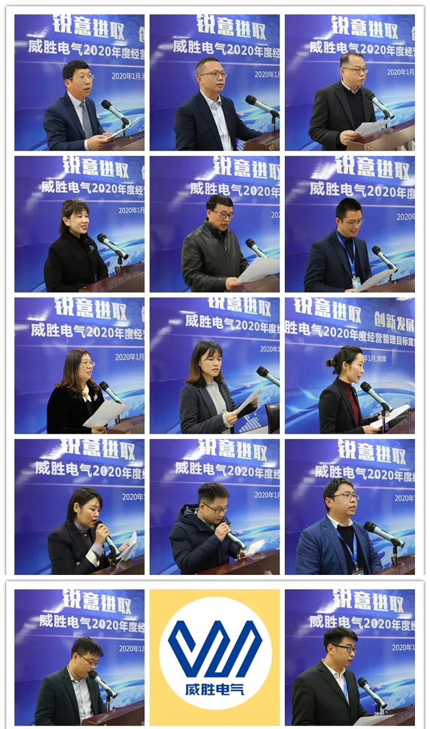 2020年經(jīng)營(yíng)管理目標(biāo)宣貫會(huì)共分為宣讀人事任命、簽定目標(biāo)責(zé)任書,和領(lǐng)導(dǎo)干部代表發(fā)言三個(gè)階段。首先,會(huì)議宣讀了2020年威勝電氣總裁任命、電氣核心經(jīng)營(yíng)管理團(tuán)隊(duì)和核心中層干部的人事任命。
