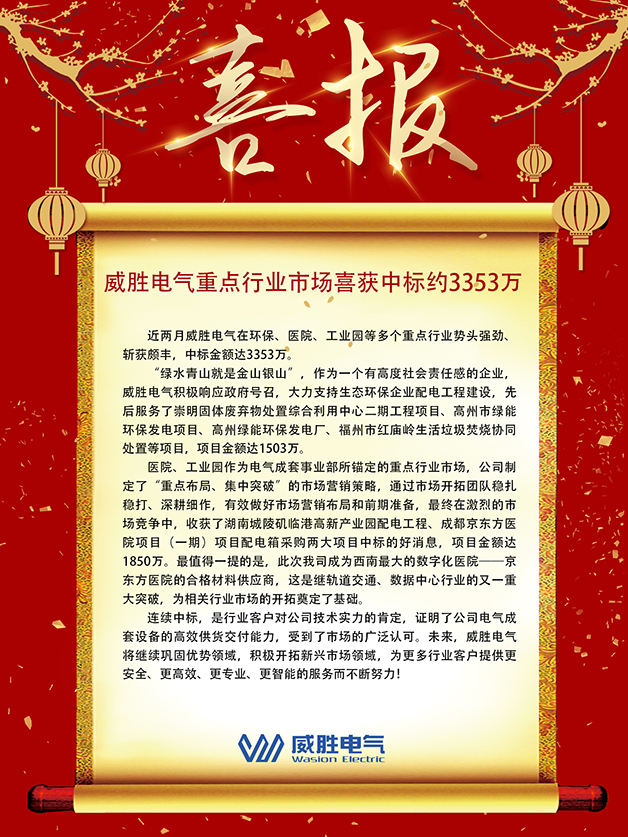 連續(xù)中標,是行業(yè)客戶對公司技術(shù)實力的肯定,證明了公司電氣成套設(shè)備的高效供貨交付能力,受到了市場的廣泛認可。未來,威勝電氣將繼續(xù)鞏固優(yōu)勢領(lǐng)域,積極開拓新興市場領(lǐng)域,為更多行業(yè)客戶提供更安全、更高效、更專業(yè)、更智能的服務(wù)而不斷努力!